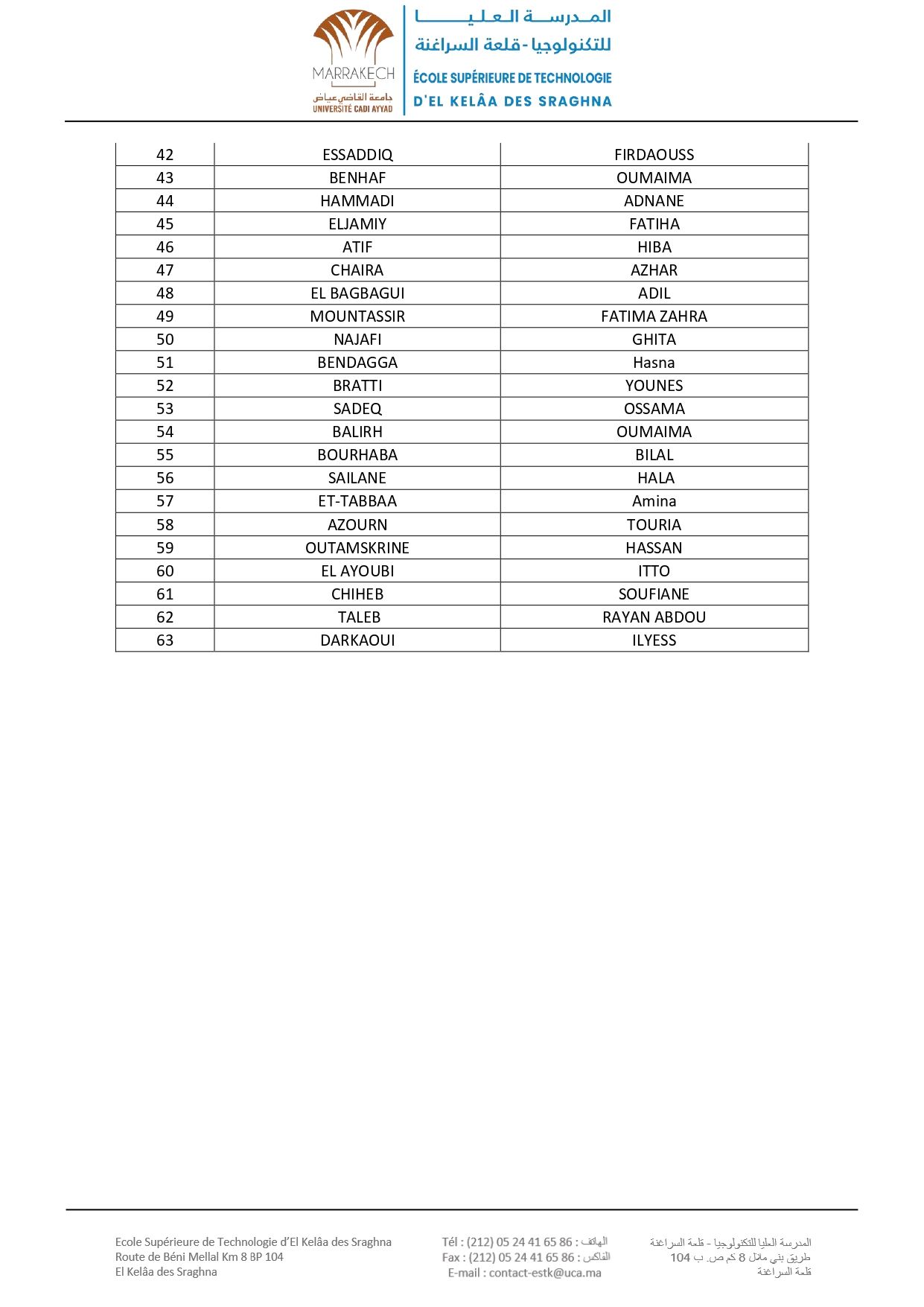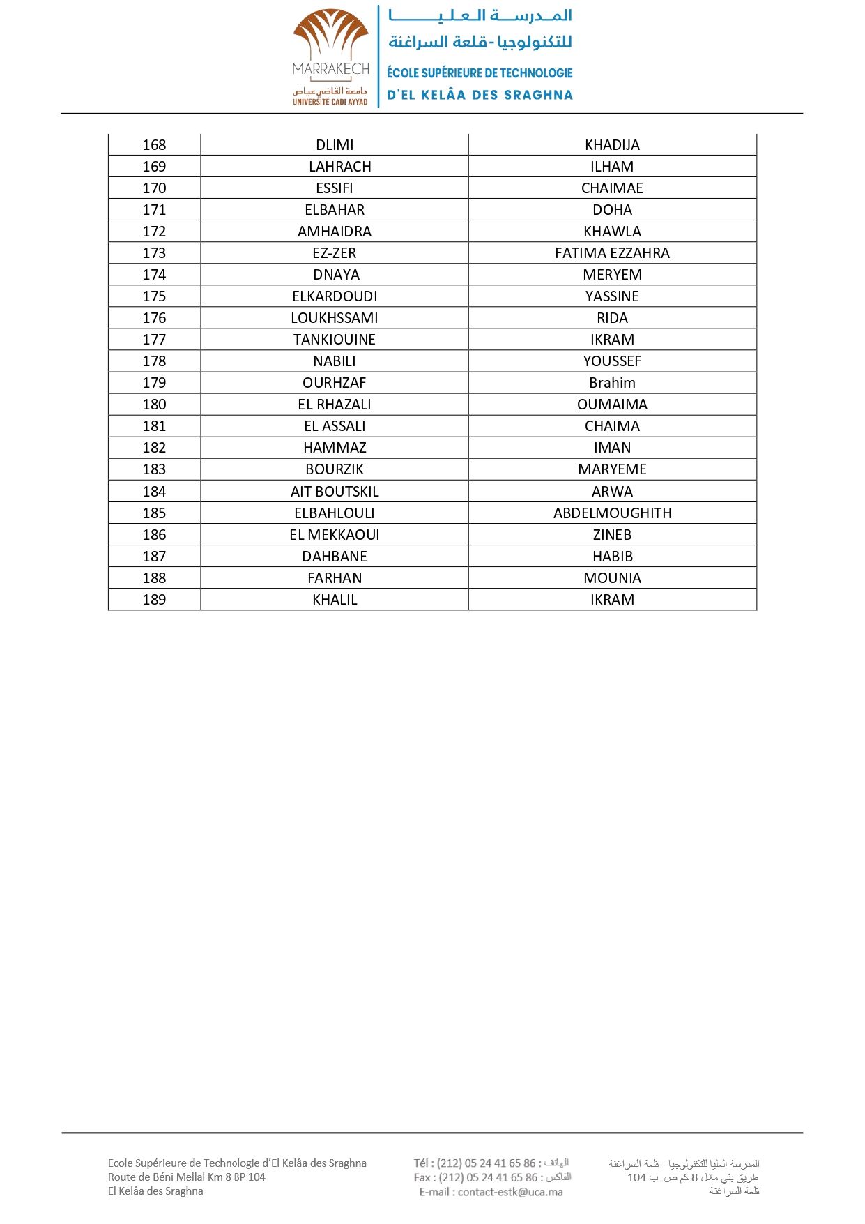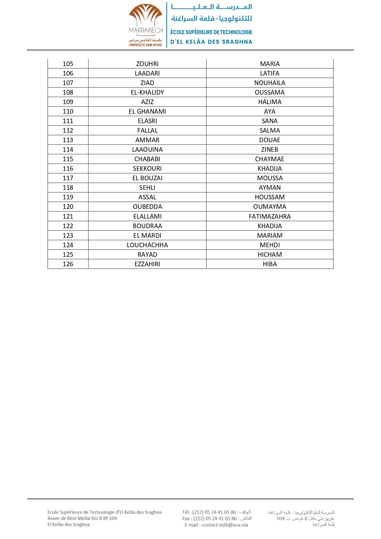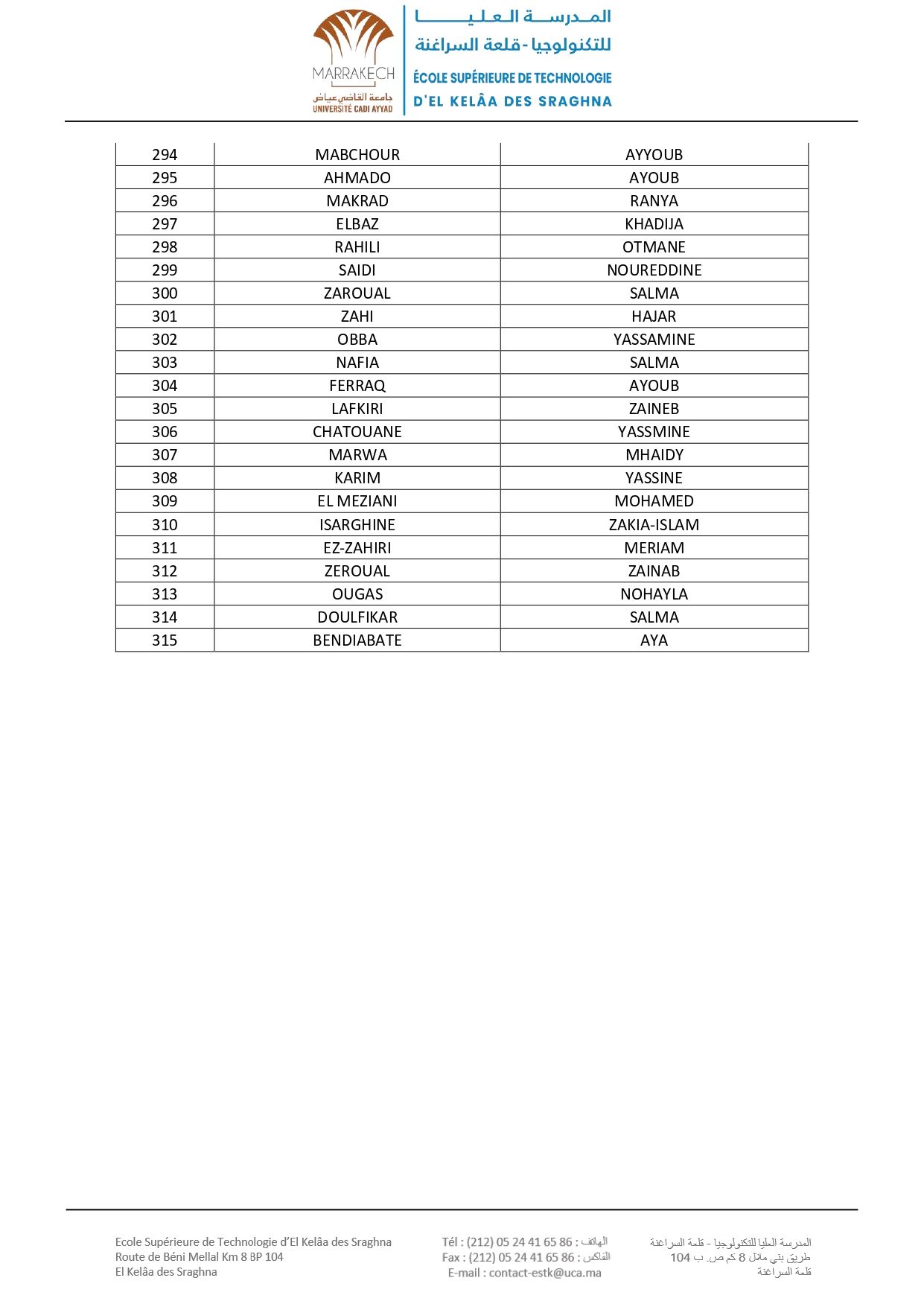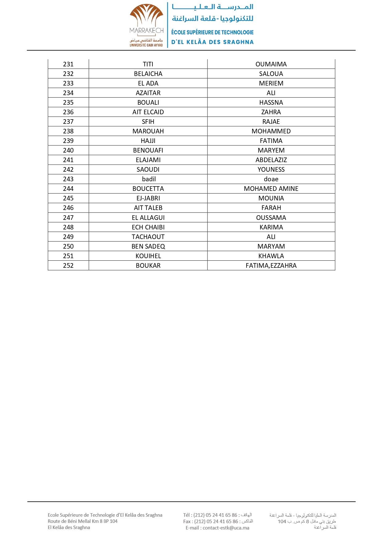 Avis aux nouveaux étudiants admis à s'inscrire en 1 ère DUT à l’EST d’El Kelâa des Sraghna (ESTK) – Listes d’attente : Filière Génie de L'environnement23 Sept 2024