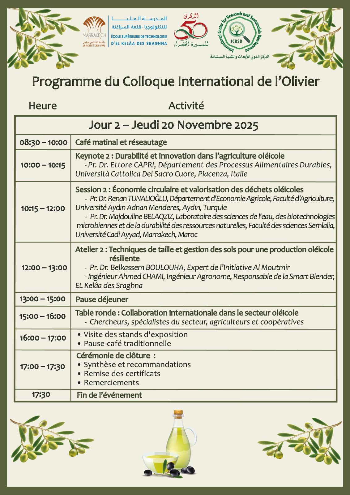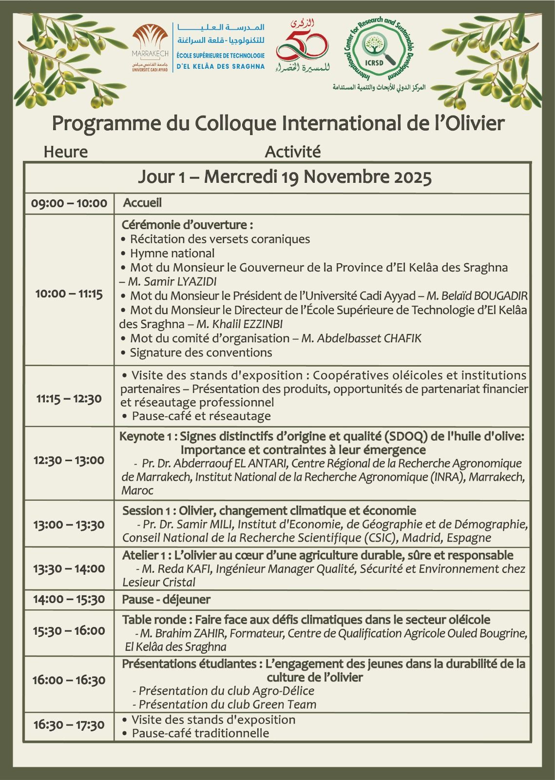 Colloque International sur: "L'Olivier .. Un patrimoine vivant et un développement durable "16 Nov 2025
